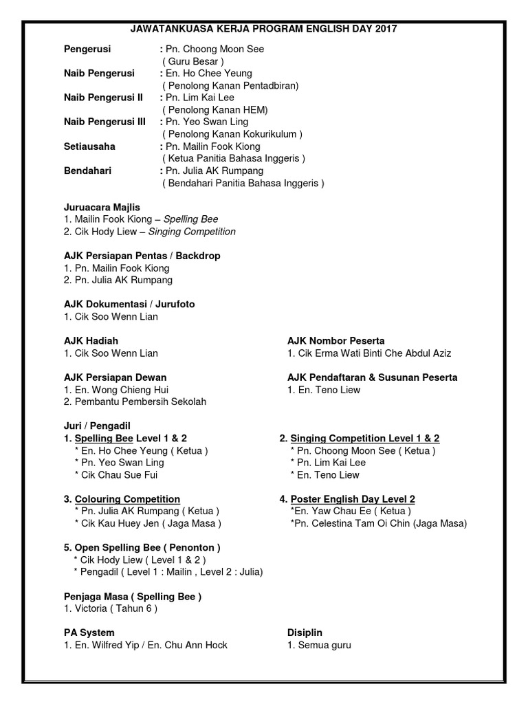 Jawatankuasa Pelaksana Program One Hour English After School Pdf
